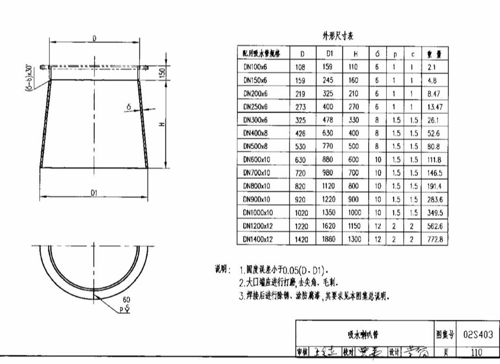 只不過它是有斜度的直上直下的那么一種變徑。而不是像我們正常的異徑管大小頭一樣,它都是緩慢的,有一個坡度那樣的緩緩的變出來的,你如果從下面往上看,它就是一條線的。那樣的比直。只不過這樣的一個用中板卷制成功的形式的直邊異徑管,在這個建筑圖集上被叫做吸水喇叭口。http://www.grgsa.cn